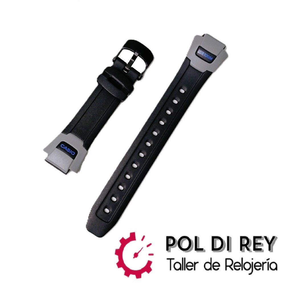 Correa de resina negra. motivos en gris y serigrafia en azul para reloj Casio LW-120H