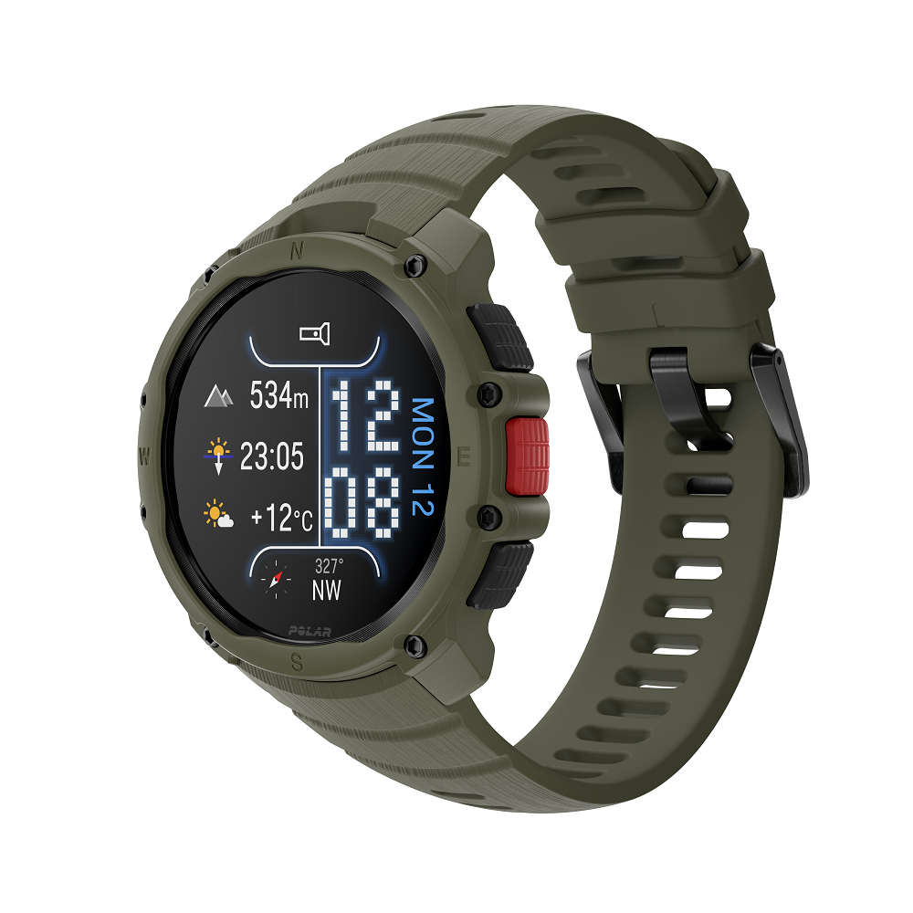 Urban Sports Watch POLAR Street X: Un reloj a prueba de golpes con GPS y pantalla táctil AMOLED, linterna LED integrada con Modo Luz Roja, registro de frecuencia cardíaca preciso, indicaciones de ruta giro a giro, diseño a prueba de golpes de estándar militar para el uso cotidiano y entrenamientos en la ciudad.