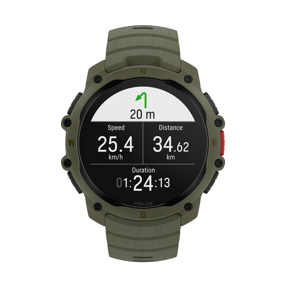 Guía de Rutas Giro a Giro – Sigue tus rutas planificadas directamente en el reloj con alertas claras en cada giro. Mantente en el camino por calles urbanas o senderos desconocidos, para que puedas centrarte en la sesión — y no en dónde girar después.