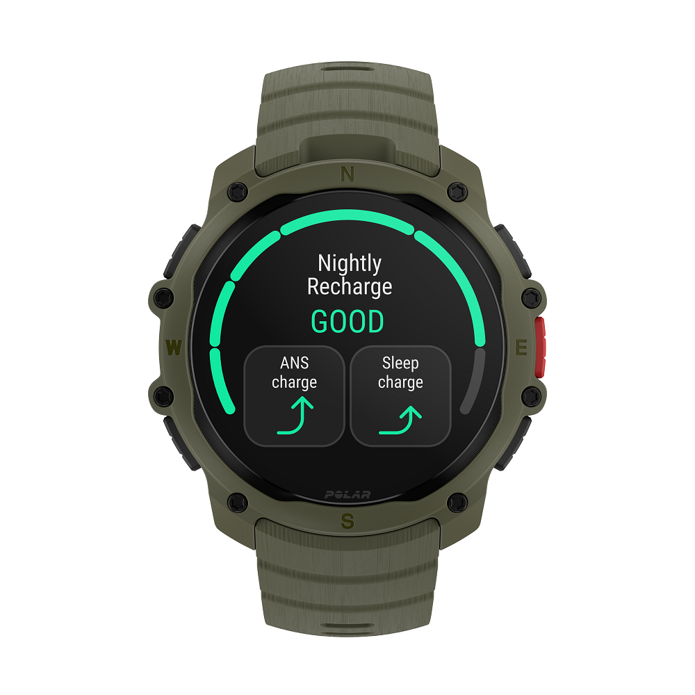 Recuperación Nocturna – Observa cómo tu cuerpo se recarga mientras duermes. La recuperación nocturna refleja cómo tu cuerpo se recupera del entrenamiento, el estrés y las exigencias diarias, utilizando la frecuencia cardíaca, su variabilidad y los patrones de respiración. Muestra si tu sistema se está restableciendo correctamente — o si sigue bajo carga.