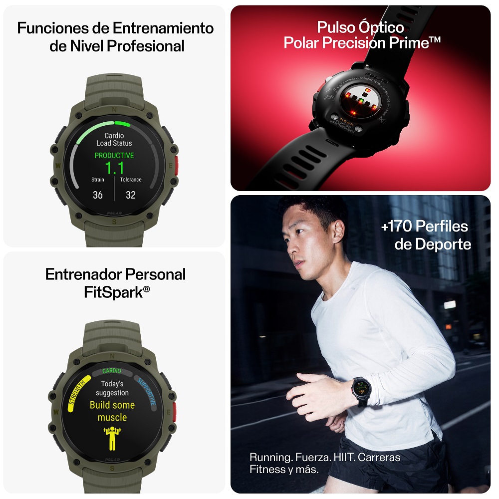 •Más de 170 perfiles de deporte — desde fuerza y running hasta deportes de equipo y más.