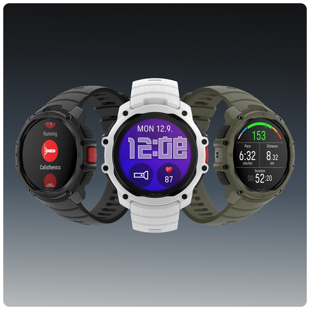 Urban Sports Watch POLAR Street X: Un reloj a prueba de golpes con GPS y pantalla táctil AMOLED, linterna LED integrada con Modo Luz Roja, registro de frecuencia cardíaca preciso, indicaciones de ruta giro a giro, diseño a prueba de golpes de estándar militar para el uso cotidiano y entrenamientos en la ciudad.